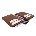 Cu o grosime de 1 – 1,2 mm, pielea naturală maro de bovină conferă durabilitate și un aspect premium. Portofelul include un compartiment generos pentru bani, 6 locuri pentru carduri și un loc special pentru buletin și permis auto, astfel încât să ai totul organizat la îndemână, fără a renunța la mobilitate.