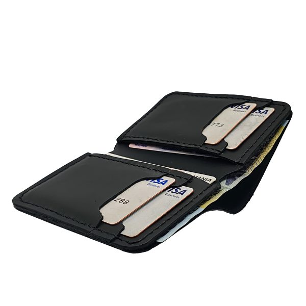 Cu o grosime de 1 – 1,2 mm, pielea naturală neagră conferă durabilitate și un aspect premium. Portofelul include un compartiment pentru bani, 8 locuri pentru carduri și un loc special pentru buletin, astfel încât să ai totul organizat și la îndemână, fără a renunța la mobilitate.