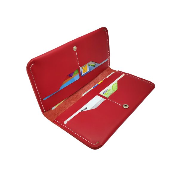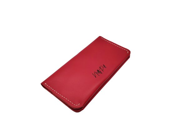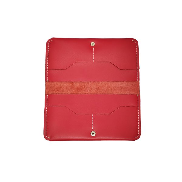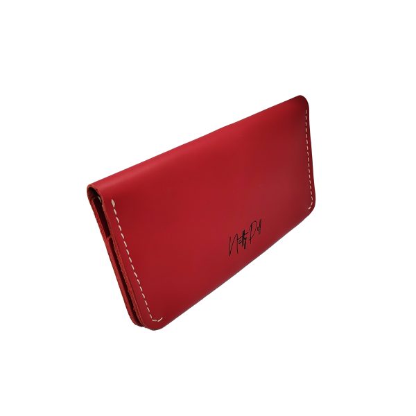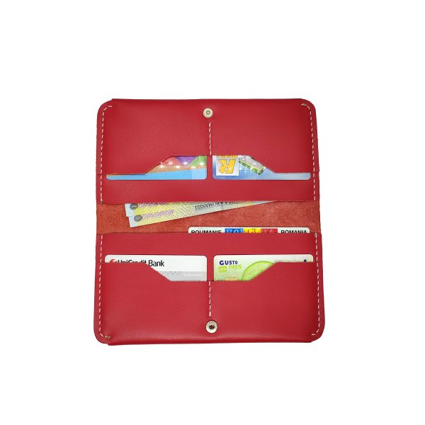 Portofel dama, handmade din piele naturala, rosie cusuta cu ata alba NTPPD03RA
