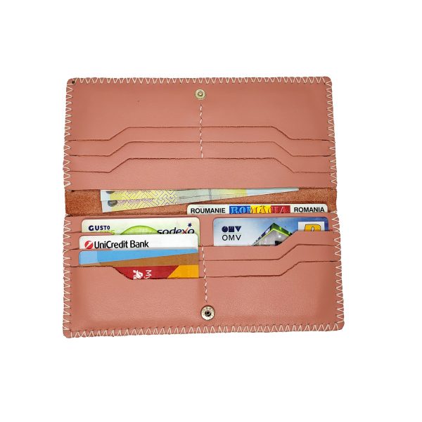 Descoperă portofelul de damă din piele naturală de înaltă calitate, cusut manual în România, perfect pentru femeile care apreciază durabilitatea, funcționalitatea și eleganța. Fabricat 100% manual, acest portofel oferă o combinație ideală între stil și utilitate, fiind realizat din piele naturală groasă de minim 1,2 mm, care îi conferă o rezistență sporită în timp.
