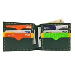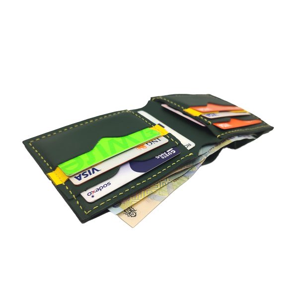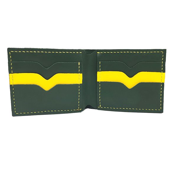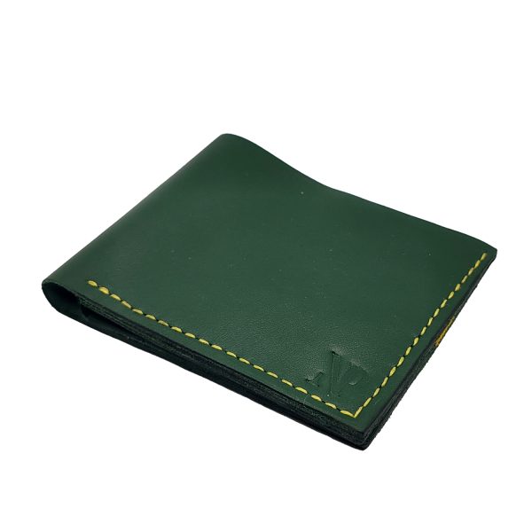 Experimentați eleganța și durabilitatea unui portofel bărbătesc handmade, realizat din piele naturală de bovină (1-1,2 mm), vopsită într-o nuanță sofisticată de verde. Fiecare cusătură este realizată manual cu ață cerată galbenă, asigurând un contrast elegant și o rezistență de lungă durată.