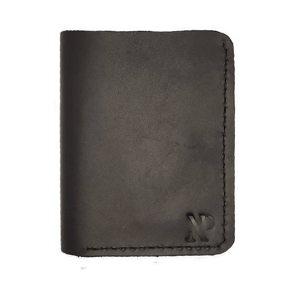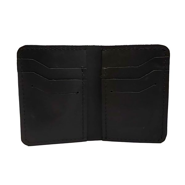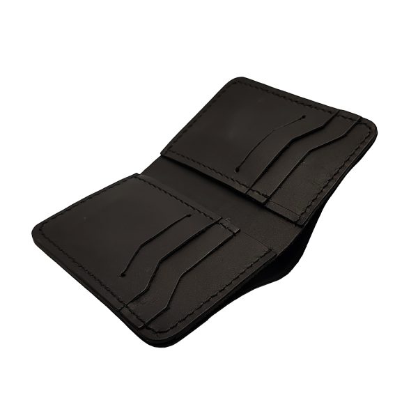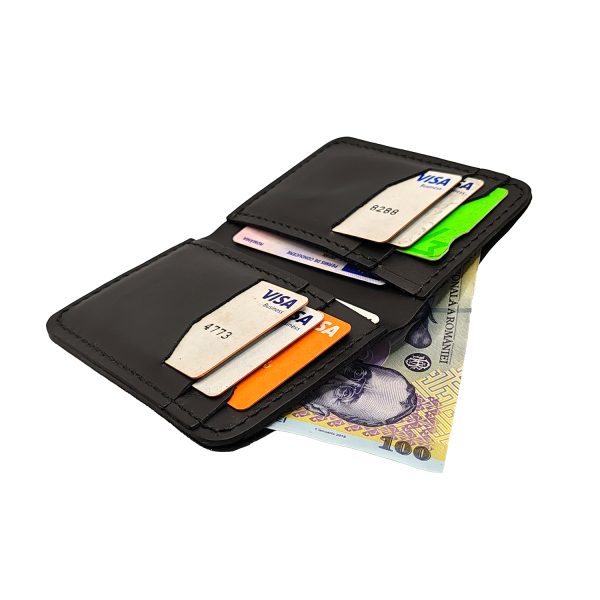 Portofel din piele naturală neagră, cu 8 sloturi pentru carduri și cusătura manuală. Design elegant și funcțional, ideal pentru orice ocazie.